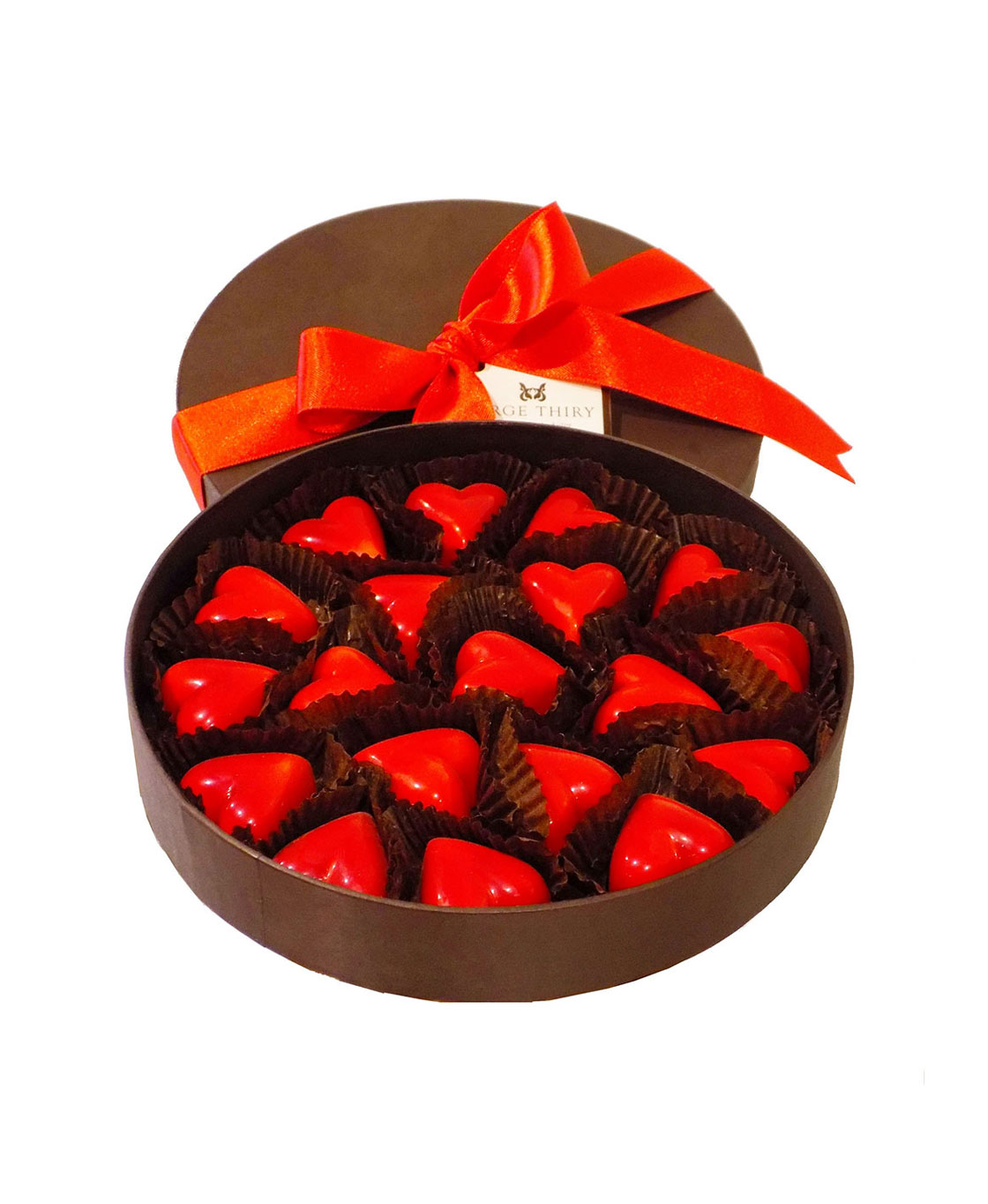 24 corazones de chocolate blanco rellenos con praliné de avellana.